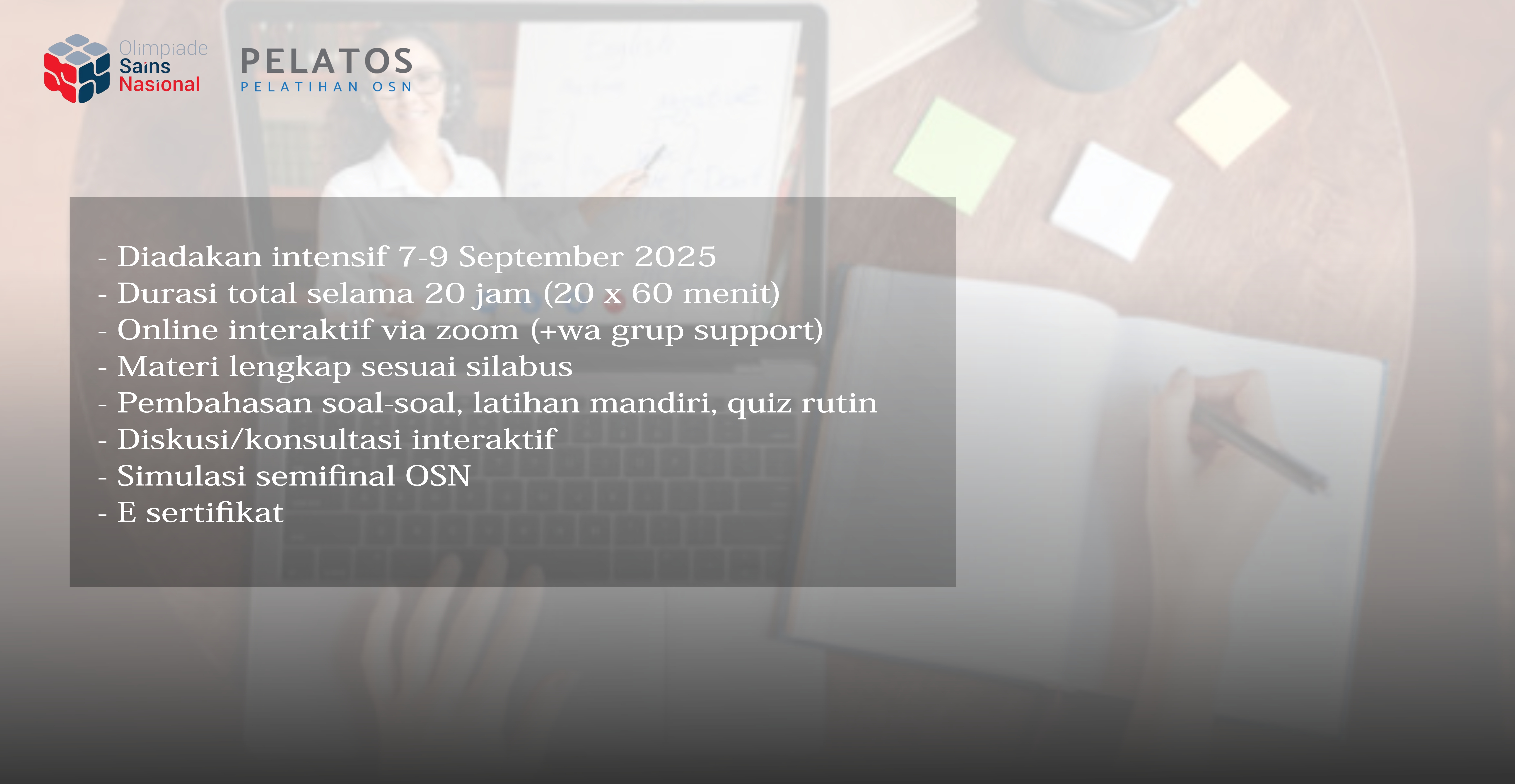 Kegiatan pelatihan serupa lainnya yang bisa jadi pilihan alternatif : Pelatihan Online Semifinal OSN tingkat SD & SMP, Diadakan tanggal 7-9 September 2025, info selengkapnya klik disini